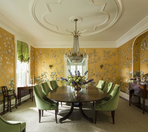 Wallpaper can add a bit of luxury to a space where you may entertain guests! Imagine the cinematic atmosphere that beautiful wallpaper brings to a delicious meal with candlelight.